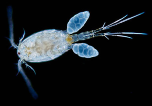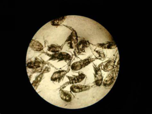 桡足类则与枝角类不同,在养殖富养型水体中,桡足类数量也会比较多,但总数远不及枝角类,个头方面、游泳速度方面、繁育能力方面却都要强于枝角类。其部分危害与枝角类相同,主要危害还是针对于幼体,对鱼虾蟹的幼体、鱼卵的进行大量的攻击,大量咬伤、咬死子鱼或稚鱼,当然这方面对成鱼成蟹的养殖没有什么影响。另外,桡足类是大量寄生虫的中间寄主,常见的吸虫、绦虫、线虫等寄生虫都是在桡足类体内寄生繁衍,水体当中大量的桡足类会对后期成蟹养殖寄生虫方面的防治带来非常大的影响。