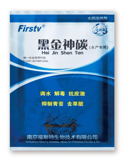黑金神碳,主要成分腐植酸钠、络合剂,在解毒方面以多元化解毒为主。调节底质解毒,网状及多孔结构可以疏松土壤,改散底质的透气性,吸附底层环境中的部分NH3及H2S,从而去除底泥的臭味,进而减少对环境的污染,达到解毒作用。螯合重金属离子,絮凝沉降达到解毒作用。补充水体碳源,保草养草,依靠藻类净化,达到解毒作用。进入机体,对非特异性免疫功能有兴奋作用,增强体液免疫功能,提升对毒性的抵抗力。创伤表面形成保护膜,同时促进细胞呼吸,加快细胞代谢,提升伤口愈合速度。进入肠道,吸收粪便中的氨气,增加吸收,降低水体污染,从而减少毒素产生。每袋1000g,用2-3亩(1m水深),化水均匀全池泼洒,用过后水会有些许发黑发浑,隔天情况明显好转。配合底改120使用效果更佳。
