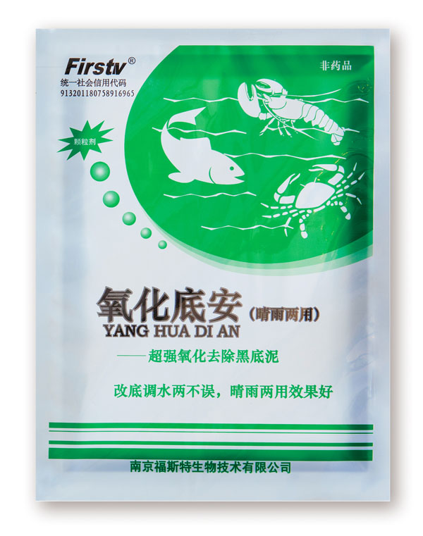 在此不得不在此提到氧化底安和底改120,主要成分是10%和20%过硫酸氢钾复合盐、氧化剂、增效剂、表面活性剂等。对底质底泥进行强氧化,消耗部分有机质,大量硫化氢、亚铁离子。对底质细菌具有杀菌速度快,杀菌广谱性高,成本低,刺激性小,对水体不产生二次污染,有害菌不易产生抗药性。杀菌同时,辅助氧化,有效改良底质,黑泥转黄泥,既可大面积全塘使用,也可小范围局部改底。每袋500g,每袋用3-4亩(1米水深),均匀投撒,黑底臭底等建议酌情加量,配合粒粒氧使用效果更佳。