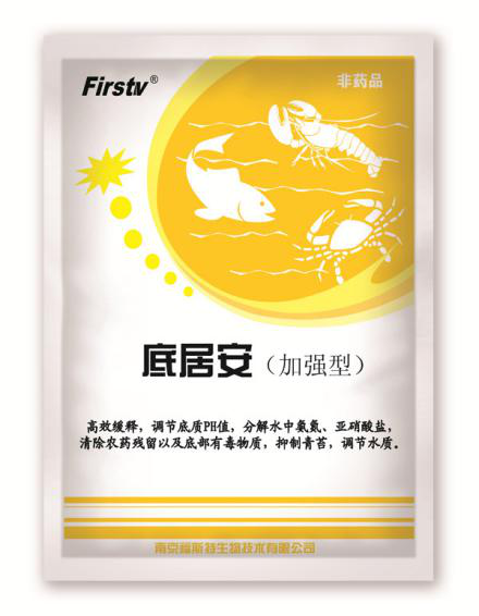 底居安,主要成分季磷盐、增效剂,新开发成功的新型控菌剂,效果类似于季铵盐,由于磷原子半径比碳原子大,极化作用更强,使得季磷盐更易吸附带负电子的细菌,因此杀菌率优于季胺盐。pH值使用范围广、广谱高效、低毒安全、长效稳定。作用原理是以致毒剂的方式作用于微生物某一特殊部位,从而破坏微生物的细胞或者生命部位达到杀菌目的。另外通过胶束多元缔合,迅速降解底泥中的氨氮、亚盐、硫化氢等有毒有害物质并结合成类似蛋白之类的无害化合物。改底效果好,无毒副作用,适用于水变后及发病期的底质处理,长效缓释。每包1kg,用5-8亩(1米水深),全池均匀投撒,视底质情况可酌情加量或连用两次。