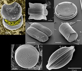 藻类的补充主要是针对已经有丰富可用能量的池塘进行藻源藻种的补充,通常有数量多、繁殖速度快、抗应激能力弱一些的小球藻,但确实世界上目前发现的唯一一种既能自养又能异养的藻类(就是说及时在没有光照的情况下,也能通过消耗水体中大分子有机碎屑来进行异养的生长繁殖,也可以在光照强烈的情况下进行自养的吸收碳源和水经过光合作用来生长繁殖);也有自然养殖水体产生困难的,对于水体有极大优势的硅藻;同时还有很多绿藻、甲藻、隐藻、裸藻等等。增加藻源藻种,通过多渠道利用补充进入水体的能量,提升水体物种丰富度,稳定生态系统。