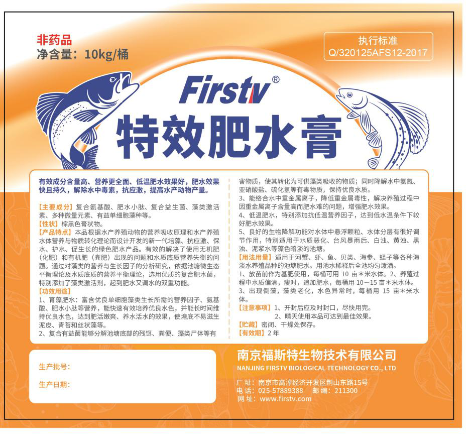 特效肥水膏,主要成分复合氨基酸、肥水小肽、复合益生菌、藻类激活素、多种微量元素、有益单细胞藻类藻种。主体是为水体当中补充氨基酸、肥水小肽,附带的也有一些复合益生菌和藻源藻种。是一种全价可溶有机肥,经过高温发酵,无残渣,具有高碳、低氮、低磷、可溶、活性、营养全面等优点,非常适合早期河蟹池塘使用。富含优良单细胞藻类生长所需的营养因子,氨基酸、肥水小肽等营养,能够快速有效培养优良水色,并能长时间维持优良水色,达到肥活嫩爽、养水活水的效果。能络合水中重金属离子,降低重金属毒性,解决了养殖过程中因重金属离子含量高而肥水难的问题。特别添加了抗低温营养因子,达到低温条件下较好的肥水效果。由于低氮、低磷,则能够很好的阻止或抑制蓝藻的大量爆发。肥水初期用效果极佳。