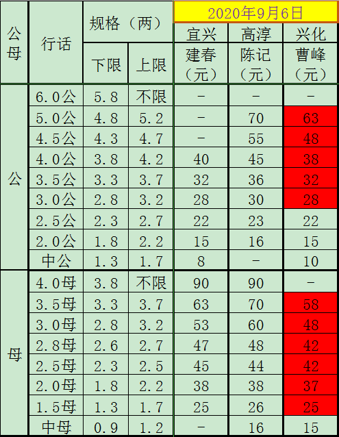 2020年9月6日成蟹价格