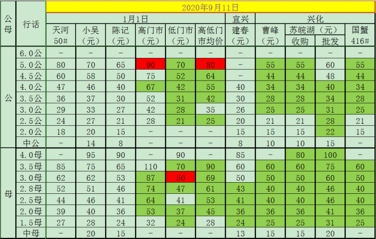 2020年9月11日成蟹价格