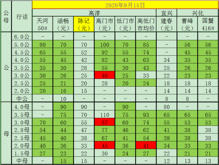2020年9月15日成蟹价格