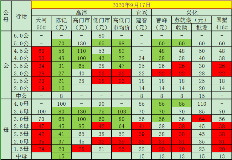 2020年9月19日成蟹价格