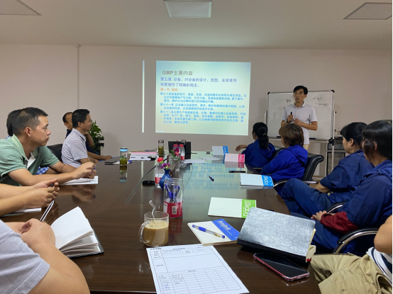其次,程虎结合我司实际情况就人员生产管理规范,各岗位职责及安全生产管理制度建设,如何做好兽药GMP的生产记录,清场自检,工艺规范以及设备维护等5大板块给参与学员进行了详细教学。